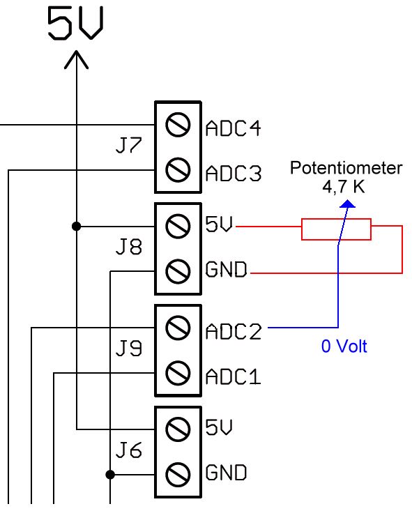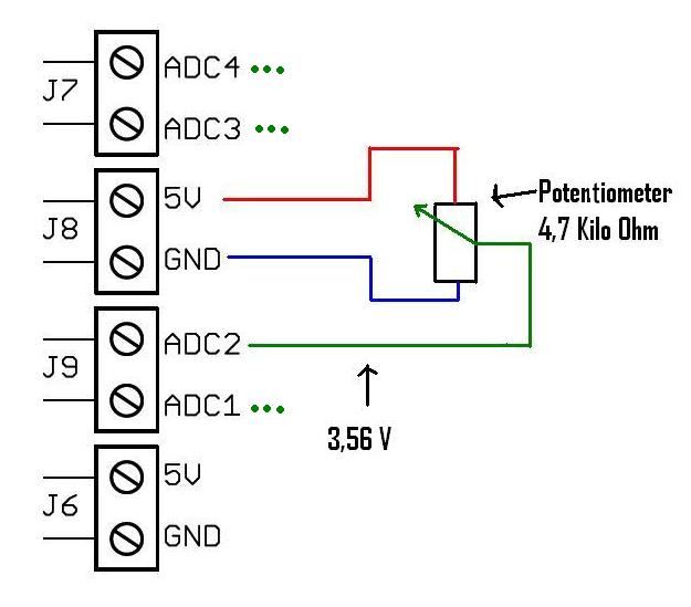 Das Potentiometer wird hier ersatzweise als Sensor