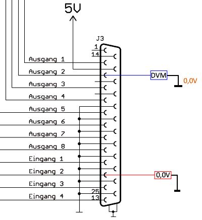 1. Dann haben wir die Gleichspannungen an den SUB-D Stecker mit einem