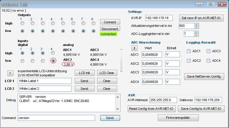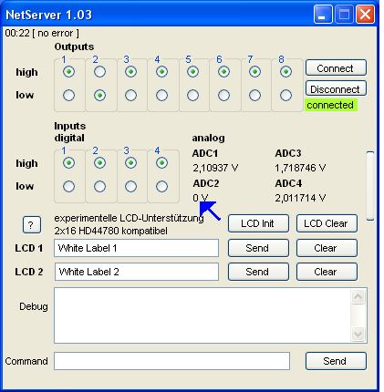diese Spannungsaenderung konnte man mit dem NetServer Programm auf dem Monitor ablesen (rote Einklammerung).