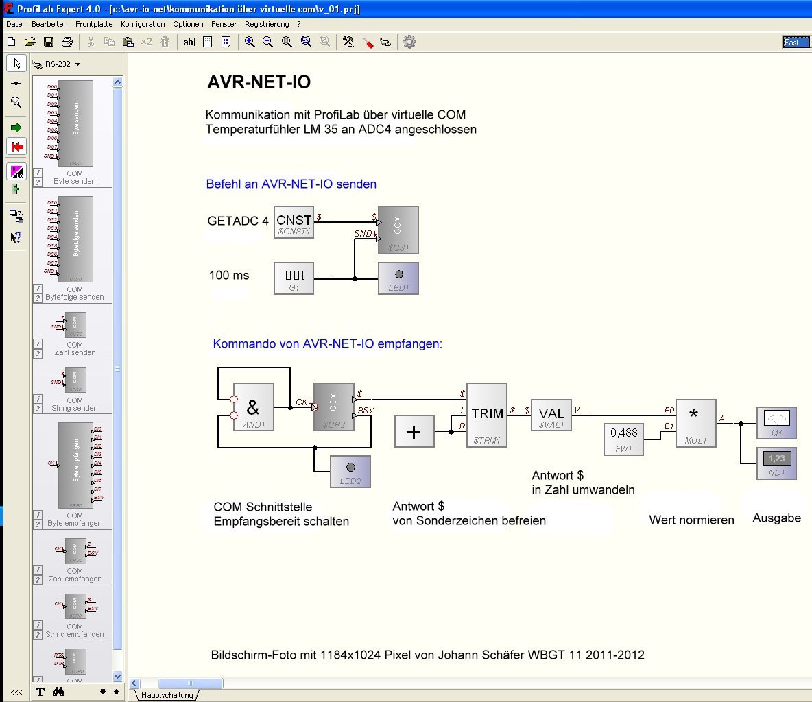 Zu nächst baut man folgende Schaltung mit ProfiLab nach: