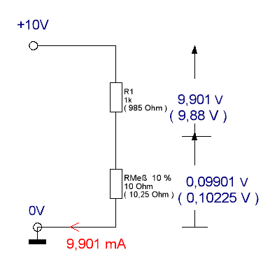UMeß = IGes * RMeß = 0,009901 A * 10 V/A = 0,0901 V