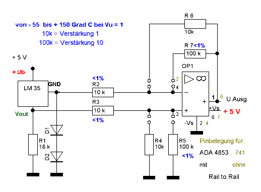 Um negative Temperaturen messen zu können ist die oben aufgeführte OP Schaltung