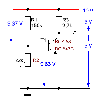 1.1 Bauen Sie die Schaltung auf und stellen Sie 5 Volt am Kollektor gegen