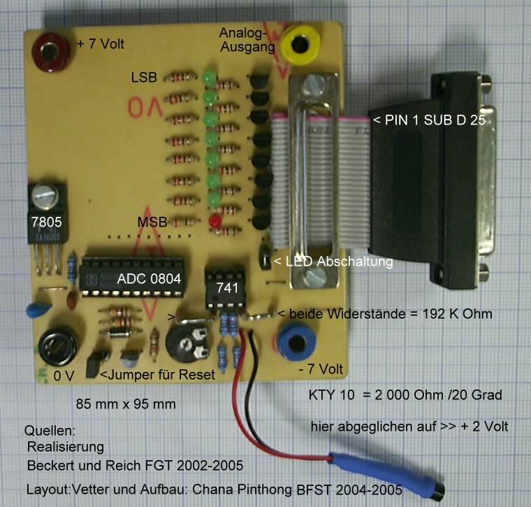 Wenn nun die Bits auf Masse liegen, kann man sie wieder einlesen und erhält das vom ADC ausgegebene Byte (aber invertiert). Man zieht daher von 255 das Byte ab und erhält den tatsächlichen Wert.