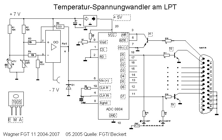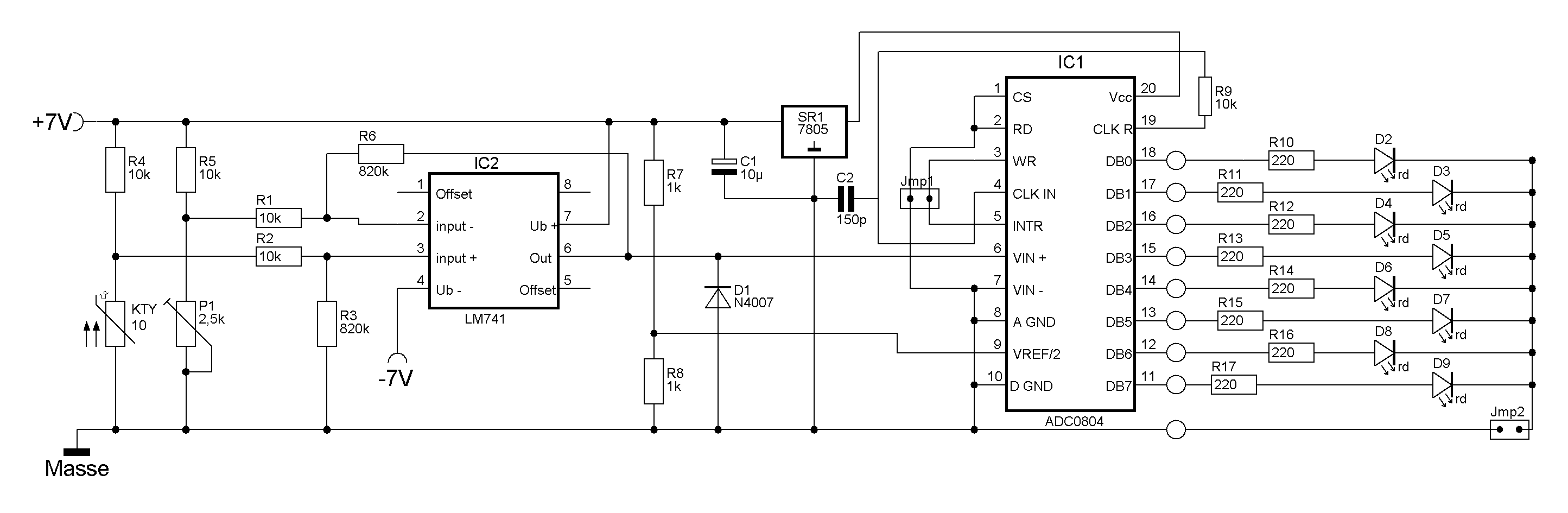 Die Diode D1 schützt den ADC 0804 vor zu hoher negativer Eingangsspannung.