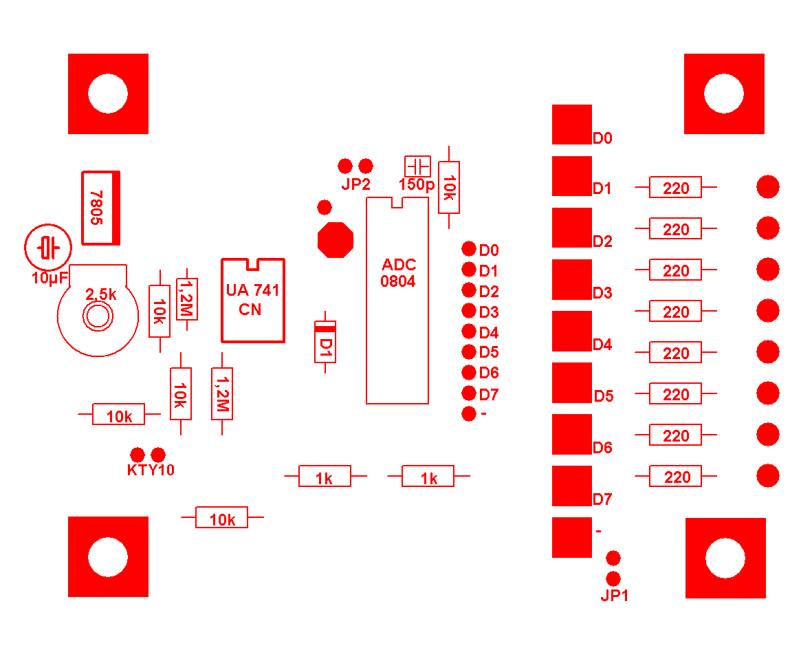 auf 2 Volt am OP Ausgang Pin 6 voreingestellt. Falls es Abweichungen beim KTY 10