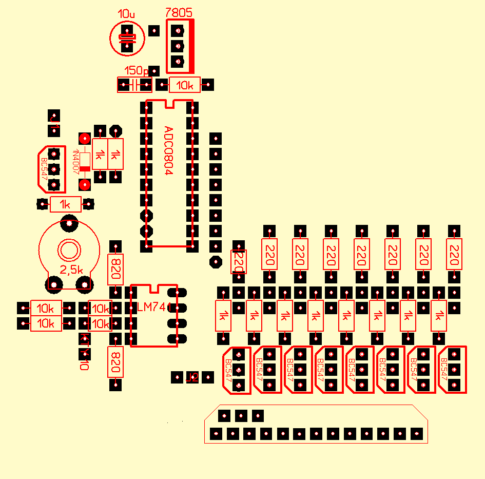 | In der BSFT 2004-2005 und im FGI 11 2004-2005 wurde die Aufgabe gestellt, das Layout um einen Analogausgang zu erweitern und um einige Platzprobleme zu beseitigen. An dieser Aufgabenstellung haben die Schüler Kai Vetter (BFST) und Oliver Flohr (FGI) die besten Entwürfe hergestellt. Hier die neue Version 3 und 3.3 mit den Ergebnissen von Reich, Vetter und Flohr | |