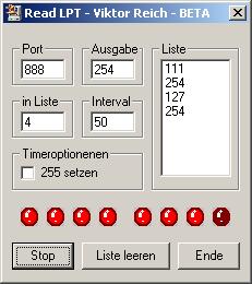 Read LPT ist ein Programm, das ich geschrieben habe. Es liest den Parallel-Port ein und ermöglicht somit die Daten unserer Schaltung zu lesen.