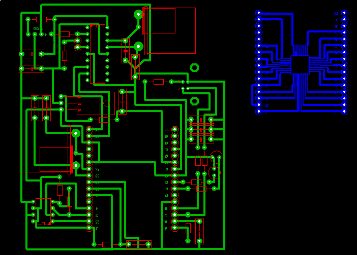 Da die geätzte Platine kleine Fehler aufweist habe ich das Layout nach dem Ätzen etwas verändert (hier ohne Fehler).