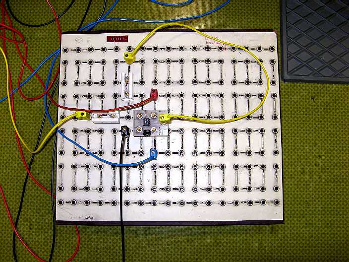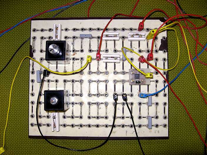 Messung 3: Um festzustellen ob es sich um einen Fehler im Aufbau, ein fehlerhaftes Bauteil handelt oder etwa um einen Konstruktionsfehler, wurde die Schaltung in mehreren Teilen mit Steckbauteilen nachgebaut.