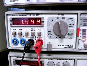 Mit der ersten Messung wurde festgestellt, ob beispielsweise Masse an den Punkten anliegt, an denen sie soll, danach folgten auf gleich Weise positive und negative Spannung, etc. – ob also die Leiterbahnen korrekt verlegt wurden.