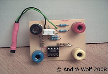 Spannung aufmoduliert. Es wird dann von einem LM741 um den Faktor 47