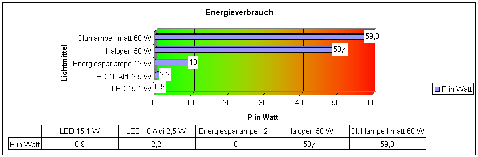 Leuchtmittel | P | Lichtmenge | Lichtmenge | Std | Tage | € | Energie | Ek-Preis | Lebens- | Anzahl | Material | Anzahl | Energie | Gesamt |