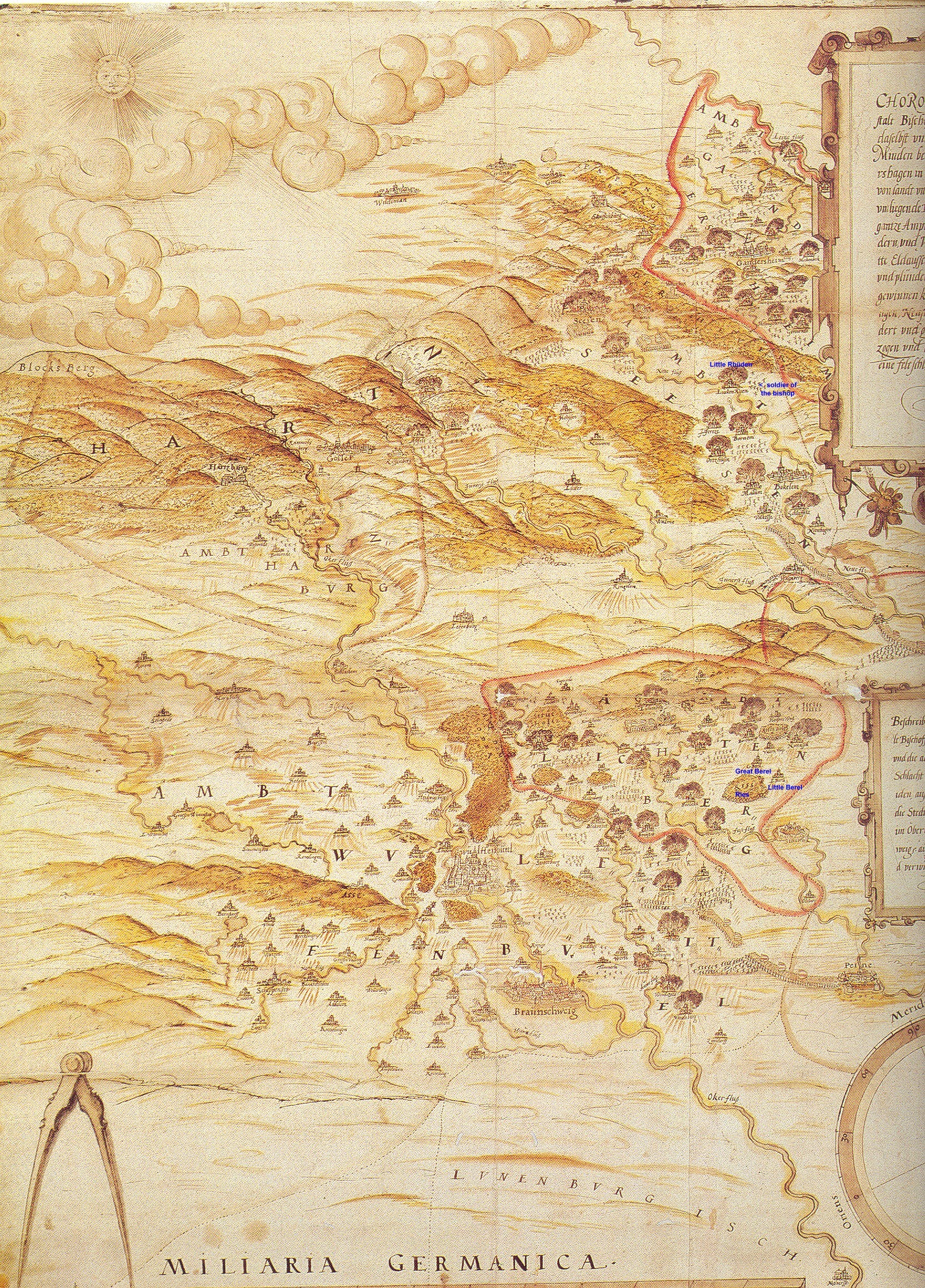 Hildesheimer Stiftsfehlde 1523 Karte von 1591 linke Kartenteil |