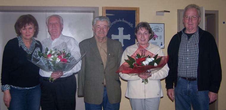 Ehrungen für 25 jährige aktive Tätigkeit für Berel. Von links Monika Adler, Alfred Wietbrock als scheidender Schatzmeister, Walter Bührich, Elisabeth Ling als scheidende 2. Vorsitzende und Manfred Bartels. Weitere Urkunden werden Evimaria und Wilhelm Brockmann, Bodo Barthauer, Volker Ling, Ilse Bartels, Eike Bock, Wolfdietrich Adler, Dorotthea und Ludwig Klamroth, Luise und Manfred Tiesler, Heinz Raffel sowie Roswitha und Eberhard Veckenstedt überbracht.